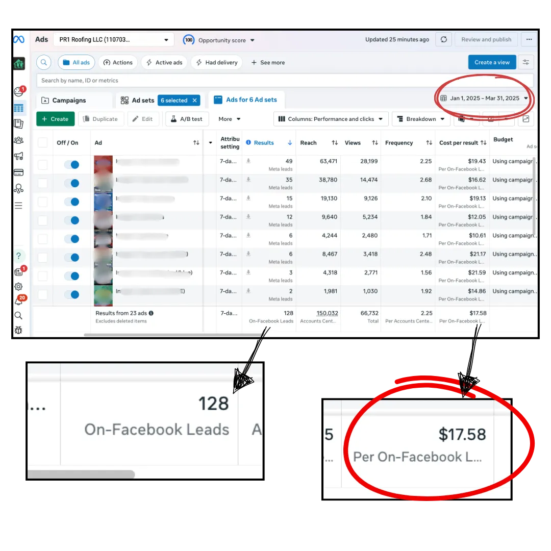 Since then he’s closed four roofs worth about $44 k total—roughly a 10× return on our total fees (including ad spend!)—with two more replacements about to sign. His phone’s now ringing with buyers who are ready (and able) to say yes.